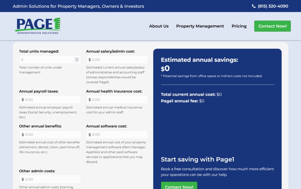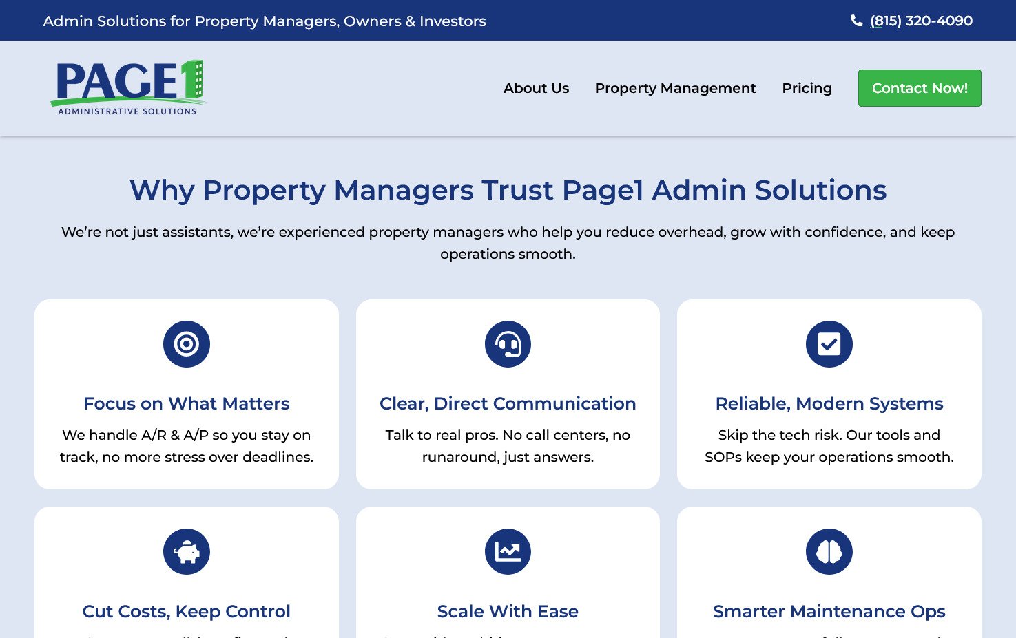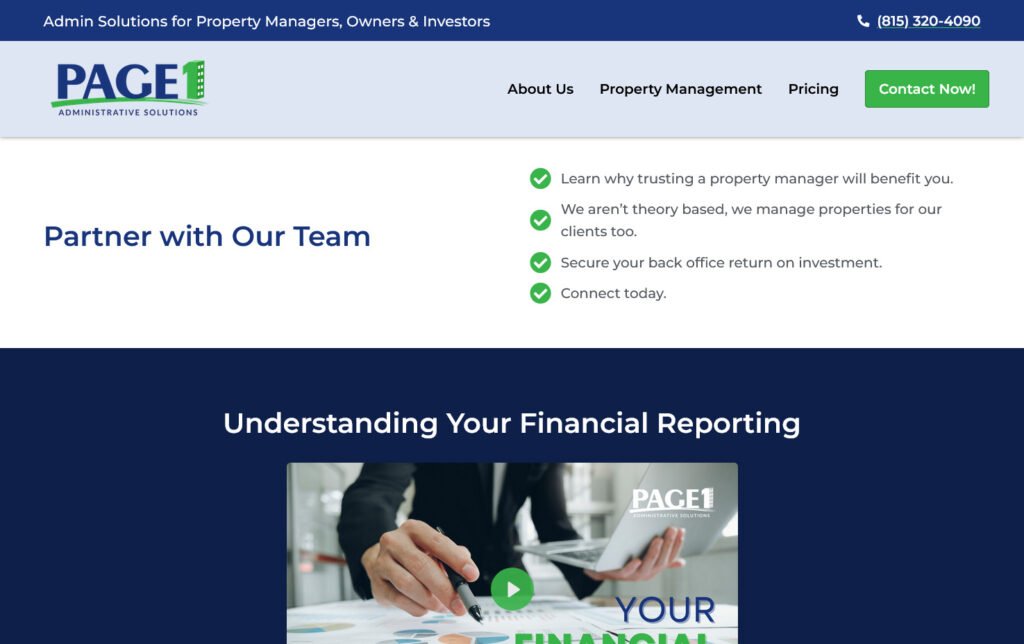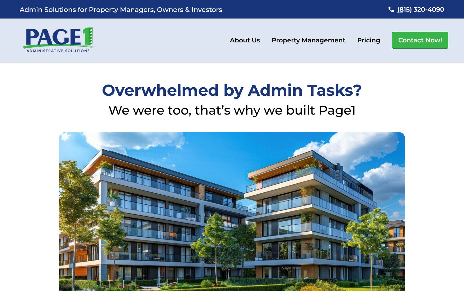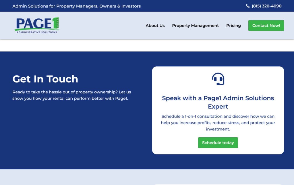 Rediseño de la página principal del sitio web de Page1, una empresa de property management. El proyecto se enfocó en mejorar el diseño y la claridad de la sección administrativa, optimizando la experiencia de uso del sitio.