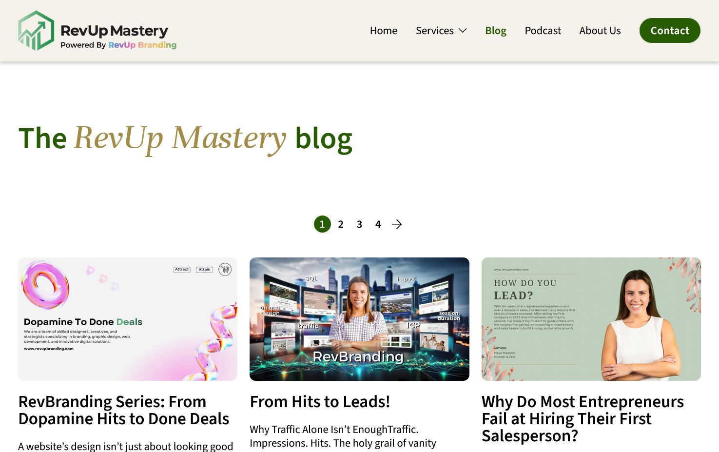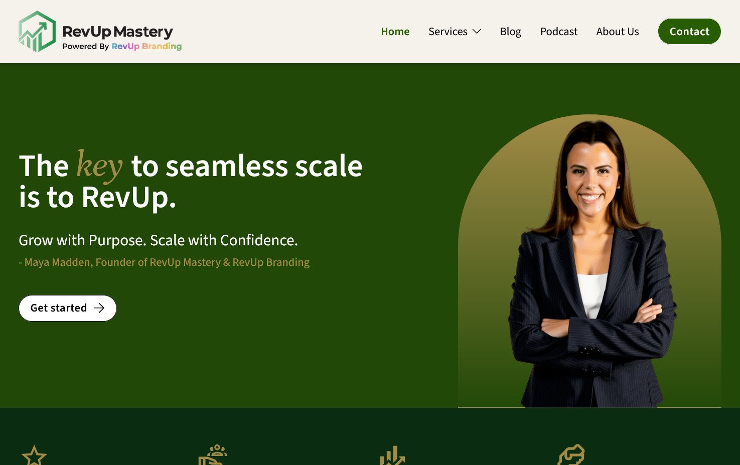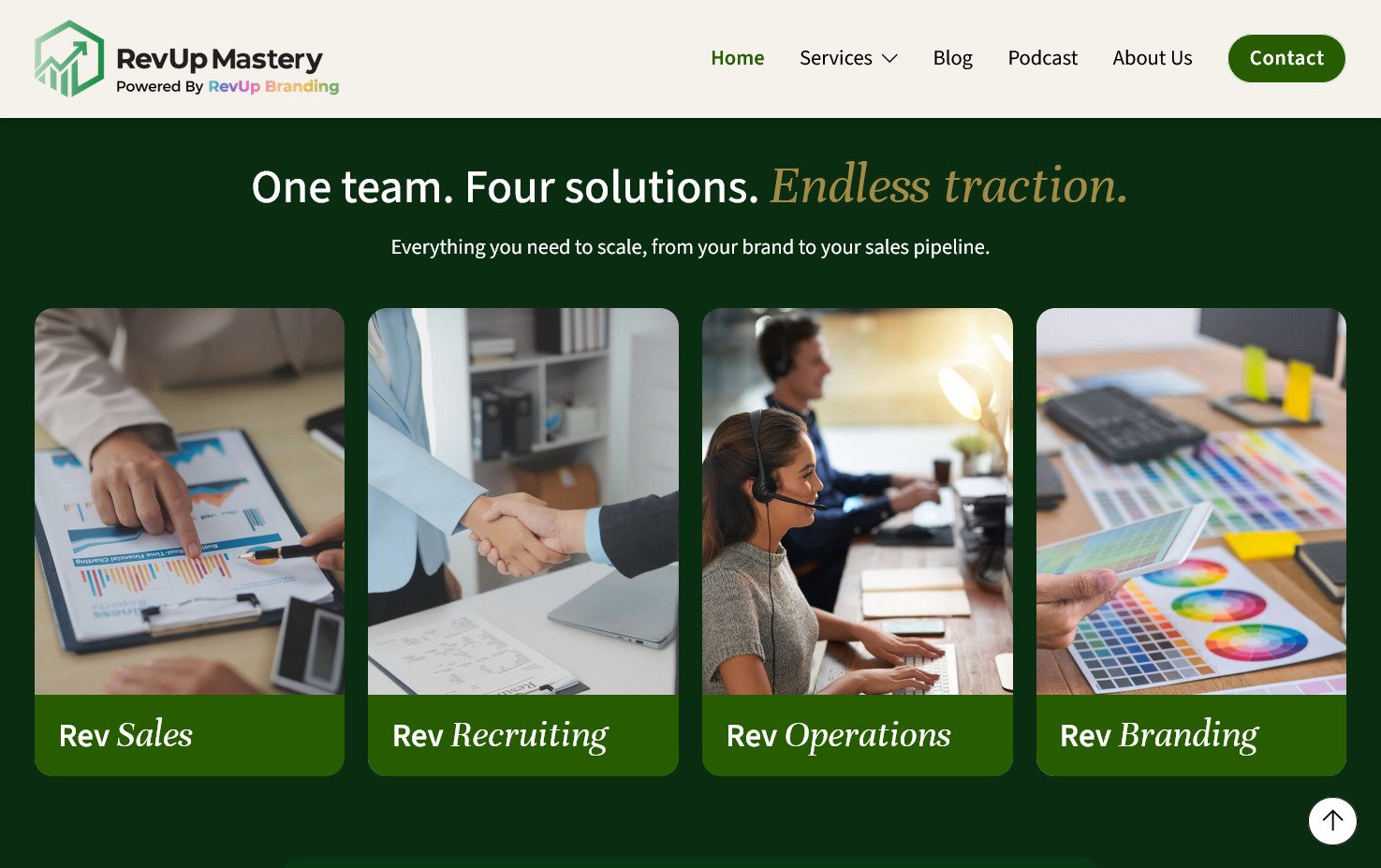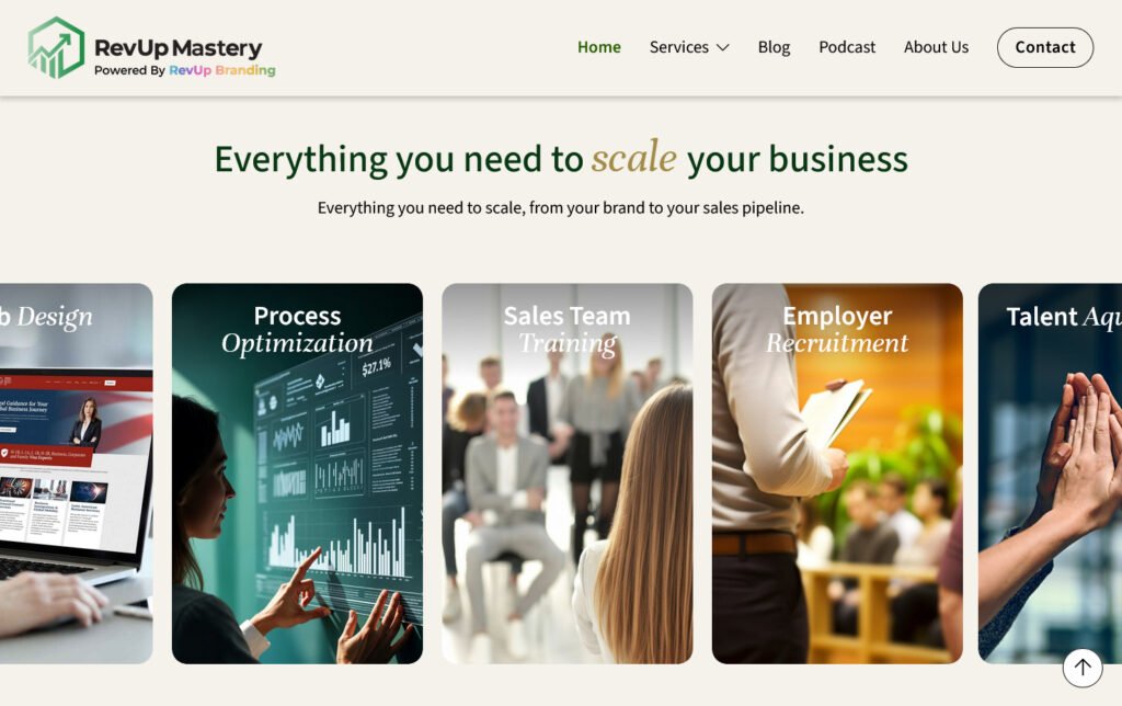 Rediseño y actualización del sitio web de RevUp Mastery, una empresa de servicios empresariales. El proyecto se enfocó en modernizar su imagen y mejorar la claridad de sus servicios.