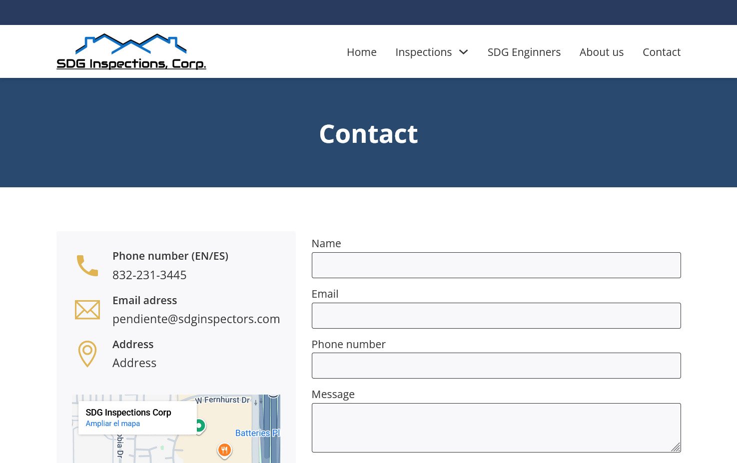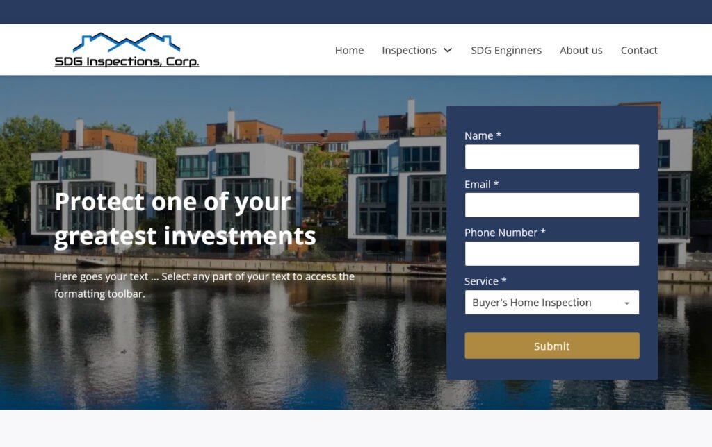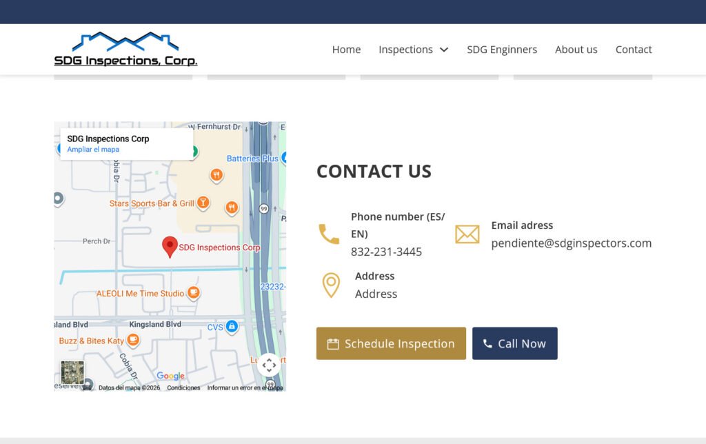 Rediseño del sitio web de SDG Inspections Corp, una empresa especializada en inspecciones de viviendas y propiedades. El proyecto se enfocó en modernizar su presencia digital y comunicar con mayor claridad su experiencia profesional y el valor de sus servicios para compradores de inmuebles.